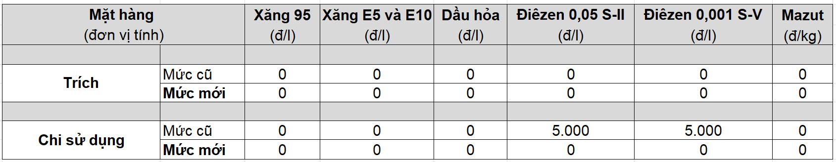 Theo văn bản số 2428/BCT-TTTN ngày 08.4.2026 của Bộ Công Thương về việc điều hành kinh doanh xăng dầu, mức trích lập và chi sử dụng Quỹ bình ổn giá xăng dầu (BOG) từ 15 giờ 30 phút cụ thể như sau: