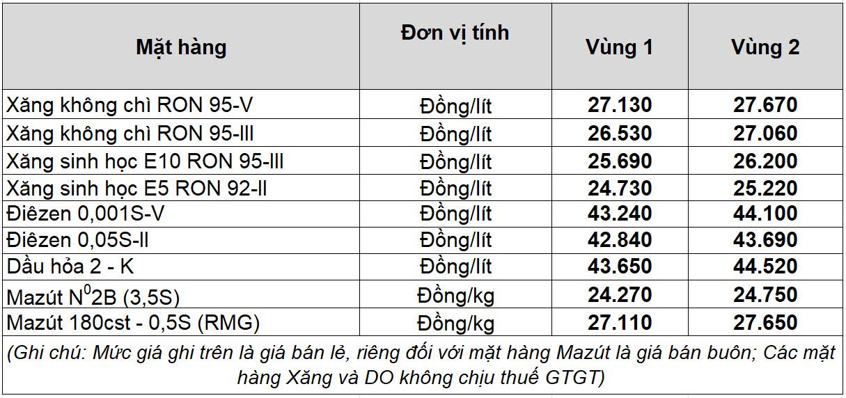 Việc điều chỉnh giá xăng dầu lần này thực hiện theo Nghị quyết số 482/QĐ-TTg ngày 26 tháng 3 năm 2026 của Thủ tướng Chính phủ về việc áp dụng mức thuế bảo vệ môi trường, thuế giá trị gia tăng, thuế tiêu thụ đặc biệt đối với mặt hàng xăng, dầu và nhiên liệu bay trong trường hợp cần thiết về lợi ích quốc gia (từ 24h00 ngày 26/3/2026 đến hết ngày 15/4/2026); Nghị quyết số 55/NQ-CP ngày 19.3.2026 của Chính phủ về sửa đổi, bổ sung một số nội dung tại Nghị quyết số 36/NQ-CP ngày 06.3.2026 của Chính phủ về Phiên họp Chính phủ thường kỳ tháng 02 năm 2026; Nghị quyết số 36/NQ-CP ngày 06.3.2026 của Chính phủ về phiên họp Chính phủ thường kỳ tháng 02 năm 2026; Nghị quyết số 204/2025/QH15 của Quốc hội về giảm thuế giá trị gia tăng, có hiệu lực thi hành từ ngày 01.7.2025 đến hết ngày 31.12.2026; Nghị quyết số 109/2025/UBTVQH15 ngày 17.10.2025 của Uỷ ban Thường vụ Quốc hội về mức thuế bảo vệ môi trường đối với xăng, dầu, mỡ nhờn có hiệu lực thi hành từ ngày 01.01.2026 đến hết ngày 31.12.2026; xuất phát từ thực tiễn diễn biến giá xăng dầu thành phẩm trên thị trường thế giới trong chu kỳ tính giá, phù hợp với nguyên tắc xác định giá bán tại Nghị định số 80/2023/NĐ-CP ngày 17.11.2023 của Chính phủ (Nghị định 80) về sửa đổi, bổ sung một số điều của Nghị định số 95/2021/NĐ-CP ngày 01 tháng 11 năm 2021 và Nghị định số 83/2014/NĐ-CP ngày 03 tháng 9 năm 2014 của Chính phủ về kinh doanh xăng dầu; theo các văn bản hướng dẫn thi hành của Liên Bộ Công Thương - Tài chính.