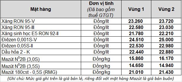 Mức giá mới có hiệu lực từ thời điểm 15 giờ 00 ngày 21 tháng 9 năm 2022 cho đến kỳ điều hành giá xăng dầu tiếp theo của liên Bộ Công Thương – Tài Chính; được công khai tại website petrolimex.com.vn và các Công ty xăng dầu thành viên Petrolimex.