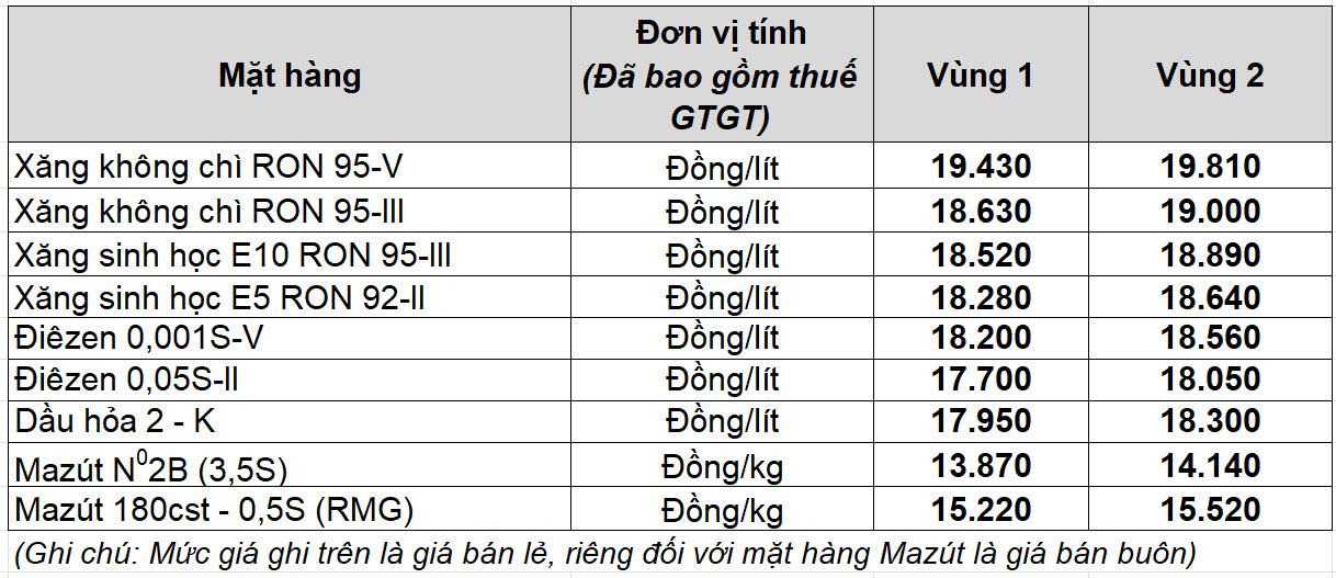 Nguồn: Petrolimex