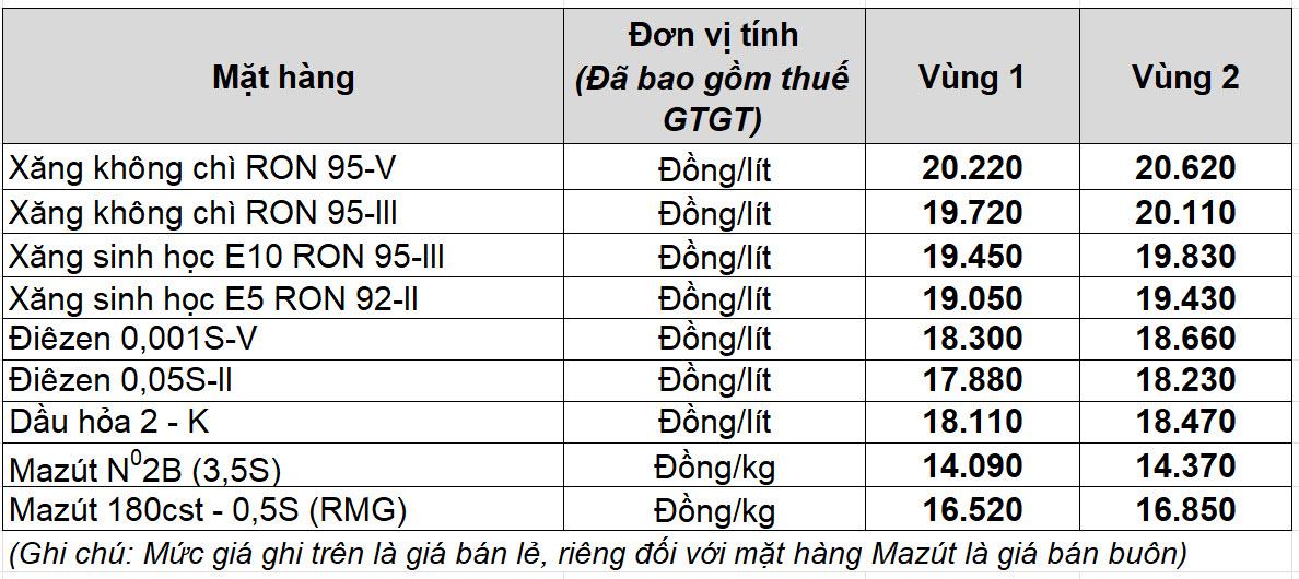 Mức giá mới có hiệu lực từ thời điểm 15 giờ 00 phút ngày 23 tháng 10 năm 2025 cho đến kỳ điều hành giá xăng dầu tiếp theo của liên Bộ Công Thương – Tài Chính; được công khai tại website petrolimex.com.vn và các Công ty xăng dầu thành viên Petrolimex.